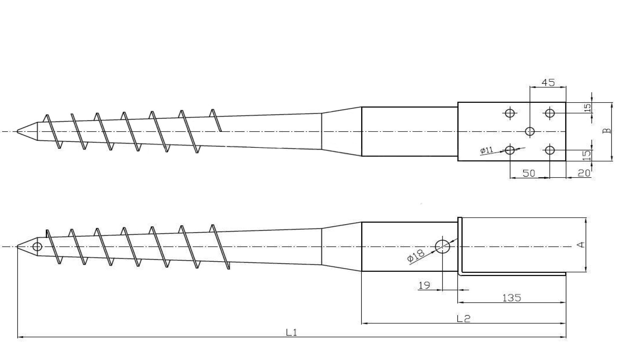Földcsavar (talajcsavar) L alakú 80x80x900